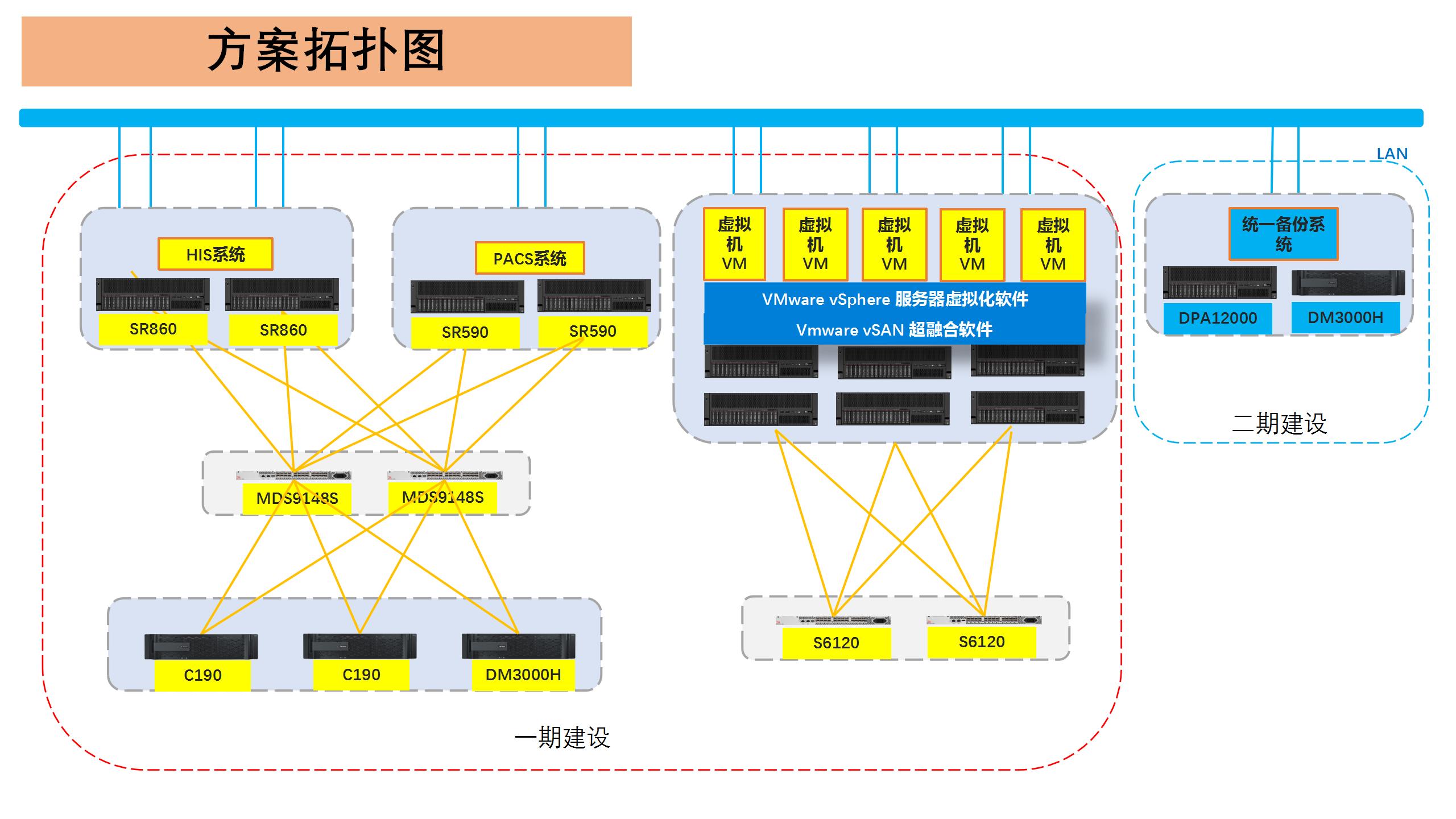 吳起縣人民醫(yī)院是一所集醫(yī)療、教學(xué)、科研、防保、急救為一體的綜合性二級甲等醫(yī)院,醫(yī)院承擔(dān)著該縣及周邊四縣近30萬人的診療保健任務(wù),是吳起縣最大的綜合性醫(yī)院。為深化醫(yī)藥衛(wèi)生體制改革,推進(jìn)醫(yī)共體建設(shè),提高醫(yī)院各項(xiàng)工作的效率和質(zhì)量,助力智慧型醫(yī)院落地,吳起縣人民醫(yī)院急需對原有業(yè)務(wù)系統(tǒng)進(jìn)行升級改造。 作為醫(yī)院信息化管理的基礎(chǔ)和骨架,HIS貫穿醫(yī)療流程、人員配置、患者就診信息、藥品銷售、庫存情況、營業(yè)狀況統(tǒng)計(jì)等全部模塊,是醫(yī)院統(tǒng)籌管理好“人-財(cái)-物“工作的基礎(chǔ),同時吳起縣人民醫(yī)院的設(shè)備上還運(yùn)行著 LIS實(shí)驗(yàn)室信息管理系統(tǒng)、PACS醫(yī)學(xué)影像存檔與通訊系統(tǒng)、手麻、體檢等一系列臨床應(yīng)用,由于設(shè)備老舊,醫(yī)院面臨高峰時段無法滿足使用需求,存儲故障率較高,數(shù)據(jù)安全威脅等諸多問題。基于吳起縣人民醫(yī)院的實(shí)際需求,在預(yù)算非常有限的情況下,藍(lán)島科技攜手聯(lián)想提供了令用戶滿意的解決方案,方案以聯(lián)想ThinkSystem SR860作為HIS系統(tǒng)服務(wù)器,SR860采用英特爾至強(qiáng)可擴(kuò)展處理器,為HIS系統(tǒng)的運(yùn)行提供了卓越的速度和可靠性;部署2臺NetApp C190通過SnapMirror-Business Continuity方式實(shí)現(xiàn)存儲級雙活;部署1臺DM3000H主要運(yùn)行PACS數(shù)據(jù)庫,未來通過SnapMirror,組成高可用環(huán)境;以6*VX5520構(gòu)建基于vSAN的超融合虛擬化資源池,搭載起吳起縣人民醫(yī)院的其他業(yè)務(wù)系統(tǒng),實(shí)現(xiàn)統(tǒng)一管理,彈性調(diào)度,靈活分配。