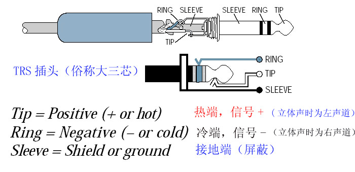二、卡農(nóng)轉(zhuǎn)大三芯線 卡農(nóng)轉(zhuǎn)大三芯線也是我們常用的一種線,它的接法類(lèi)似于上面說(shuō)的,只不過(guò)一邊用卡農(nóng)頭(公/母視情況而定)一邊用大三芯頭(又稱(chēng)TRS插頭)。以卡農(nóng)公頭為例,如下圖:
