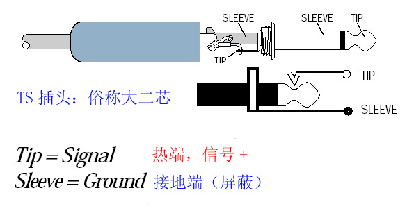 三、卡農(nóng)轉(zhuǎn)大兩芯線 卡農(nóng)轉(zhuǎn)大兩芯線是一種非平衡的接法,它一邊使用卡農(nóng)頭一邊使用大兩芯頭(又稱(chēng)TS插頭),我們唱卡拉OK用的話(huà)筒就用這樣的線。由于卡拉OK用話(huà)筒通常都是動(dòng)圈的,無(wú)須為其供電,因此要將卡農(nóng)頭的3端接地(與1端相連),2接熱端,1接電線的屏蔽層。如圖: